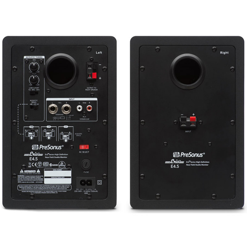 این مانیتورها سه نوع ورودی را در اختیارتان می گذارند که استفاده ازEris را با میکسر، کارت صدا و یا مدیا پلیر آسان می کند. Eris E4.5 دارای ورودی های استریوی RCA و 1.4 و 1.8 اینچی می باشد. با این ورودی ها مشکلی از بابت اتصال Eris به منابع line level نخواهید داشت ( حتی قابلیت اتصال به موبایل شما هم وجود دارد). ناگفته نماند که این مانیتور دارای یک امپ هدفون نیز می باشد تا بتوانید میکس هایتان را با هدفون هم چک کنید.
