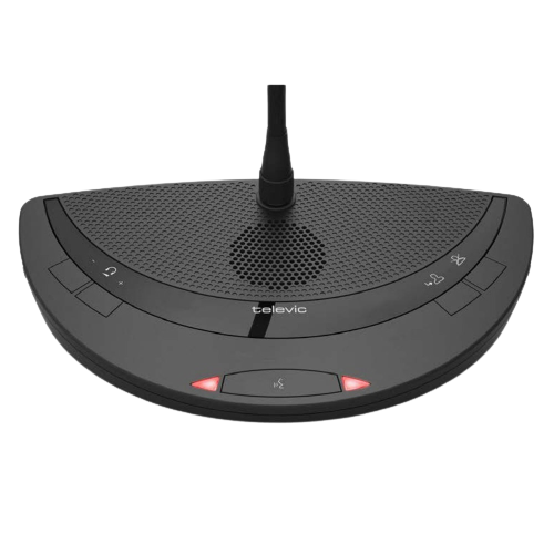 کنسول دیجیتال وایرلسی ریاست جلسه رومیزی – دارای بلندگوی داخلی- دارای خروجی مجزای هدفون – دارای دو LED وضعیت کنسول – میکروفون های قابل تعویض در اندازه های30-40-50-70 سانتی متری – گوسنک آنتی GSM – نصب و راه اندازی آسان – استفاده از باطری های Lithium-Ion -پشتیبانی از استاندارد AES – دارای کلید های مخصوص ریاست جلسه جهت قطع و وصل یونیت ها