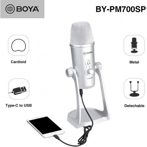 BOYA BY-PM700SP Multipattern USB Condenser Microphone وکال، ساز آکوستیک، سخنرانی 20-20000 هرتز 45db +3db دسی بل 150 اهم Omni-directional، Bidirectional، Cardioid، Stereo 1042 گرم