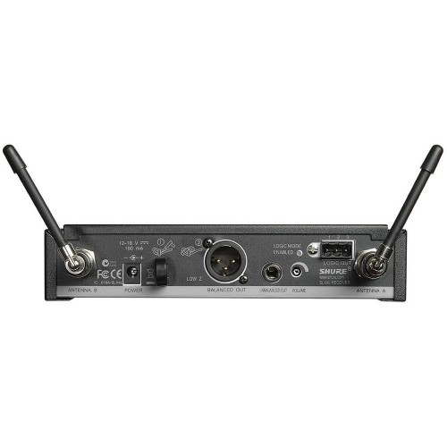 گیرنده SLX4 رک مونت و قابل نصب در رک می باشد و ویژگی مهم آن طراحی آنتن ها به صورت Diversity است. این نوع طراحی امکان پذیرش قوی ترین سیگنال را برای رسیدن به بهترین کیفیت فراهم می کند. گیرنده SLX4 دارای یک صفحه نمایش جامع LCD برای نمایش اطلاعات فرکانس، گروه و کانال و همچنین وضعیت باطری فرستنده و سطح صوتی می باشد.