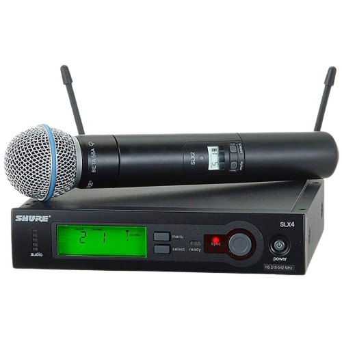 سیستم های میکروفن بی سیم شرکت SHURE سری SLX عملکرد و قابلیت اطمینان مورد نیاز برای استفاده در اماکن مختلف برای تقویت و بهبود کیفیت صدا را فراهم می کند. این سیستم های UHF حداکثر در هشت پهنای باندی متفاوت می باشد که در طیف 24 مگاهرتز است. این سری شامل گیرنده SLX4 و فرستنده دستیSLX2 و با کپسول های متفاوتی عرضه می شود که معروف ترین آنها SM58 و BETA58 است. همچنین از بادی پک SLX1 برای میکروفن یقه ای استفاده می شود.