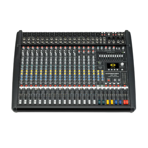میکسر آنالوگ CMS 1600-3 یک میکسر صدا 16 کاناله، ساخت کمپانی دایناکورد آلمان است. از این تعداد ورودی، 12 کانال جهت اتصال میکروفون/لاین و چهار کانال جهت ورود میکروفون/ لاین استریو پیش بینی شده است. تمامی پتانسیوتر ها و فیدر های استفاده شده درCMS 1600-3 از برند ALPS هستند تا علاوه بر عبور بدون افت کیفیت سیگنال از آنها، سالیان دراز به مصرف کننده ی خود بدون افت کیفیت سرویس دهی کند. در بخش نوار های ورودی این میکسر آنالوگ، روی هر نوار امکانات تغییر گین ورودی، اکولایزر سه باندی، فیلتر حذف فرکانس های پایین، FX send، Aux Send و Monitor Send فراهم شده است. همچنین جهت اتصال بی درد سر ورودی های متفاوت میکروفون و لاین استریو از دستگاه های متفاوت، ورودی های مختلف XLR ،TRS و RCA روی میکسر CMS 1000-3 تعبیه شده است. میزان دیستورشن قطعات الکترونیکی این سیستم کمتر از دو هزارم درصد است بنابراین هیچ نگرانی بابت ایجاد نویز و یا هام در خروجی وجود ندارد.