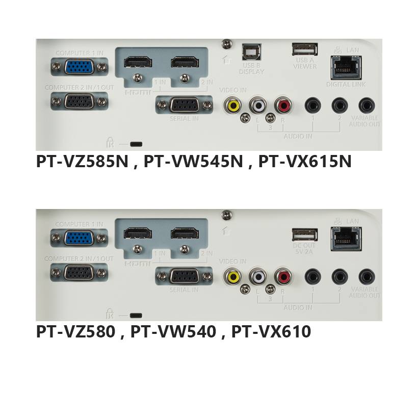 ویدئو پروژکتور پرتابل PT-VZ580 پاناسونیک شامل مدل هایی ازجمله PT-VZ580، PT-VZ585N، PT-VW545N، PT-VW540، PT-VX615N، PT-VX610 بوده و در میان این مدلها تنوع انتخاب خوبی را در برابر مشتری قرار میدهد. کنتراست این سری دیتا پروژکتور 16000:1 است که در این رده بسیار خوب محسوب میشود. رزولوشن این مدل از خانواده ی پرتابل پاناسونیک WUXGA است.
