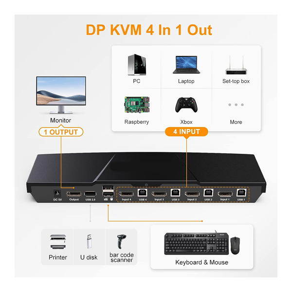 قابلیت اشتراک گذاری لوازم جانبی از پورت USB بین ورودی ها نظیر Printer ,U disk و …